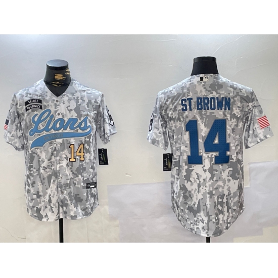 >Men's Detroit Lions #14 Amon-Ra St. Brown 2024 Arctic Camo Salute To Service Stitched Baseball Jerseys
