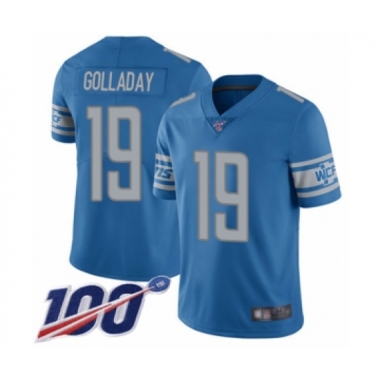 >Men's Detroit Lions #19 Kenny Golladay Blue Team Color Vapor Untouchable Limited Player 100th Season Football Jersey