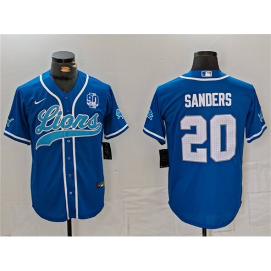 Men's Detroit Lions #20 Barry Sanders Blue With 90th Anniversary Cool Base Stitched Baseball Jersey