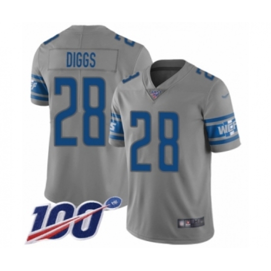 >Men's Detroit Lions #28 Quandre Diggs Limited Gray Inverted Legend 100th Season Football Jersey