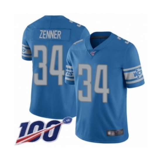 >Men's Detroit Lions #34 Zach Zenner Blue Team Color Vapor Untouchable Limited Player 100th Season Football Jersey