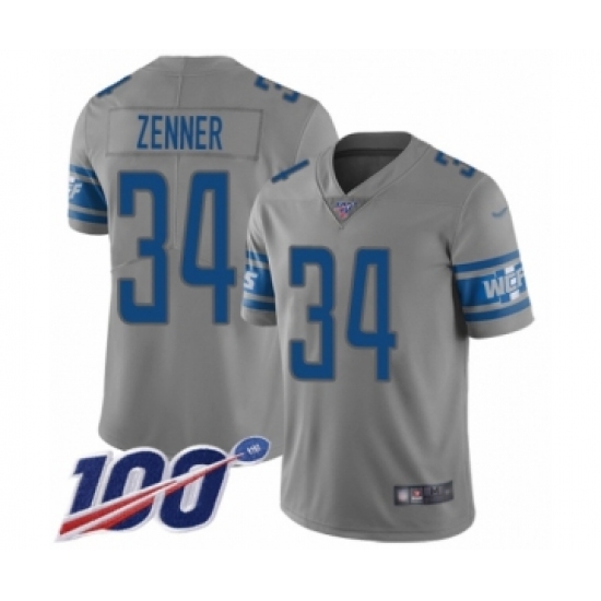 >Men's Detroit Lions #34 Zach Zenner Limited Gray Inverted Legend 100th Season Football Jersey