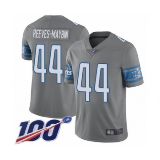 >Men's Detroit Lions #44 Jalen Reeves-Maybin Limited Steel Rush Vapor Untouchable 100th Season Football Jersey