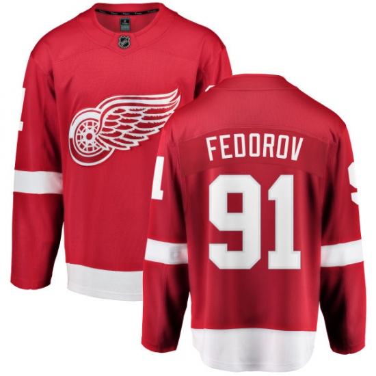 Home>NHL>Detroit Red Wings>Sergei Fedorov>Men's Detroit Red Wings #91 Sergei Fedorov Fanatics Branded Red Home Breakaway NHL Jersey