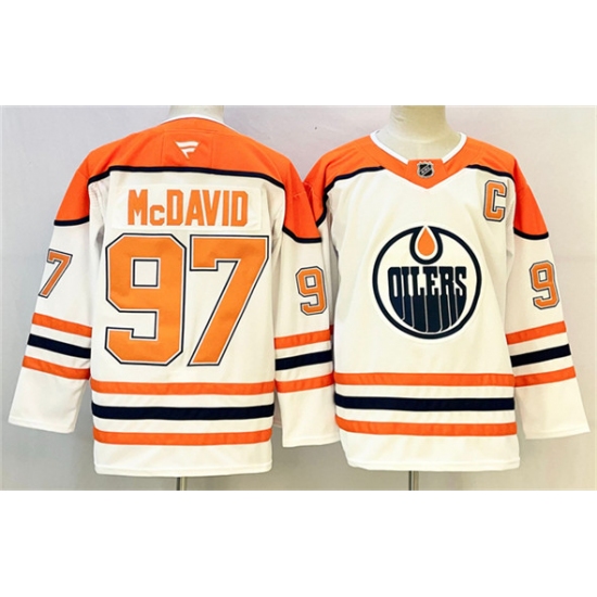 >Men's Edmonton Oilers #97 Connor McDavid White Orange 2024-25 With C Heritage Classic Primegreen Stitched Jersey