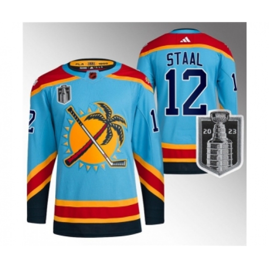 >Men's Florida Panthers #12 Eric Staal Blue 2023 Stanley Cup Final Reverse Retro Stitched Jersey