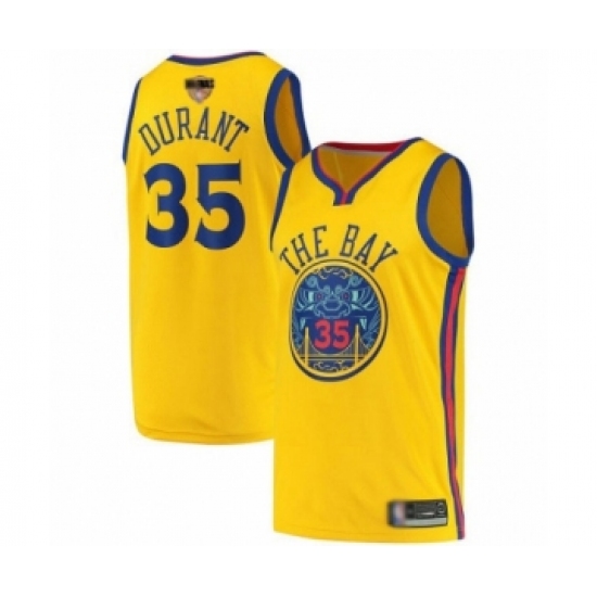 >Men's Golden State Warriors #35 Kevin Durant Swingman Gold 2019 Basketball Finals Bound Basketball Jersey - City Edition