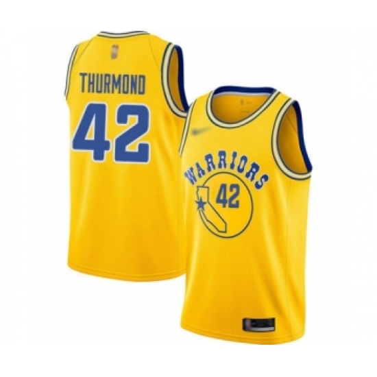 Men's Golden State Warriors #42 Nate Thurmond Swingman Gold 2019 Basketball Finals Bound Basketball Jersey - City Edition