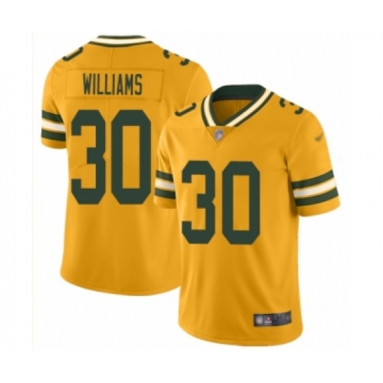 >Men's Green Bay Packers #30 Jamaal Williams Limited Gold Inverted Legend Football Jersey