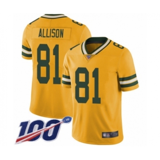 >Men's Green Bay Packers #81 Geronimo Allison Limited Gold Rush Vapor Untouchable 100th Season Football Jersey