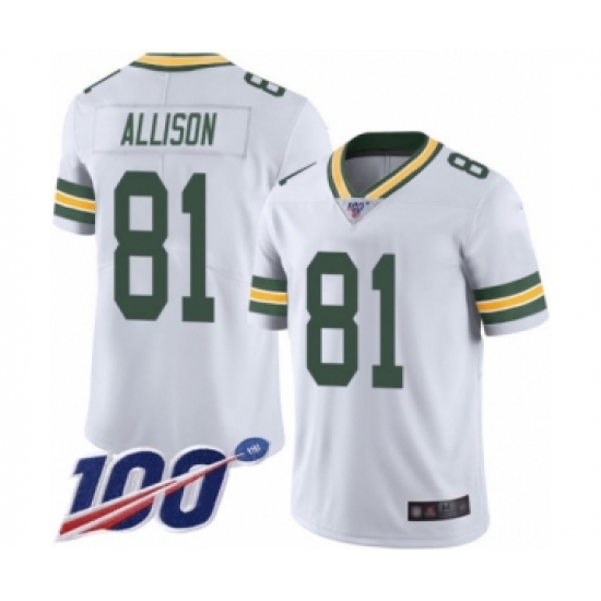 Men's Green Bay Packers #81 Geronimo Allison White Vapor Untouchable Limited Player 100th Season Football Jersey