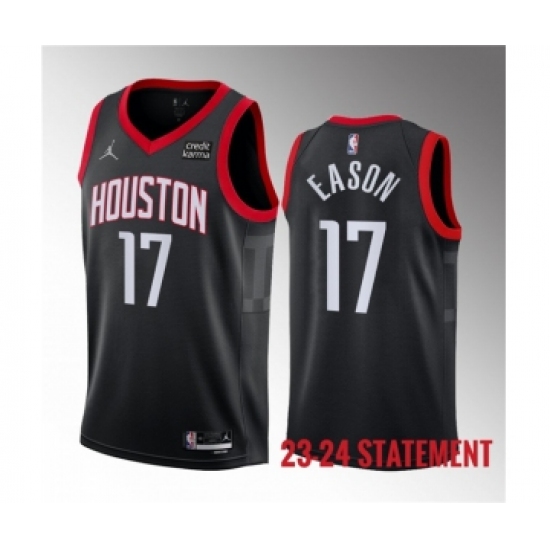 >Men's Houston Rockets #17 Tari Eason Black 2023 Statement Edition Stitched Basketball Jersey