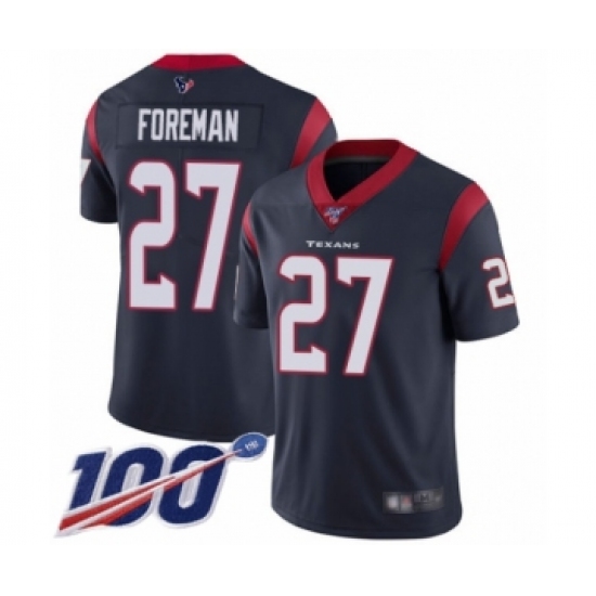 Men's Houston Texans #27 D'Onta Foreman Navy Blue Team Color Vapor Untouchable Limited Player 100th Season Football Jersey