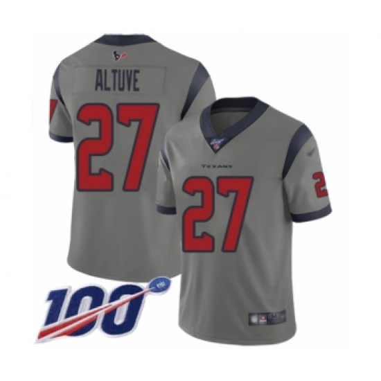 >Men's Houston Texans #27 Jose Altuve Limited Gray Inverted Legend 100th Season Football Jersey