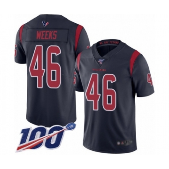 >Men's Houston Texans #46 Jon Weeks Limited Navy Blue Rush Vapor Untouchable 100th Season Football Jersey