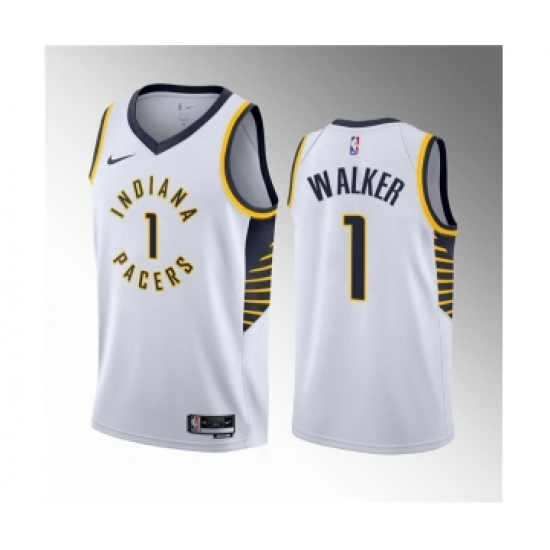 >Men's Indiana Pacers #1 Jarace Walker White 2023 Draft Association Edition Stitched Basketball Jersey