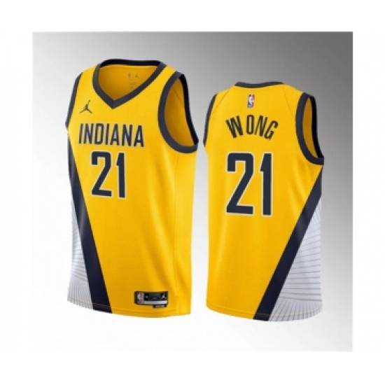 >Men's Indiana Pacers #21 Isaiah Wong Yellow 2023 Draft Statement Edition Stitched Basketball Jersey