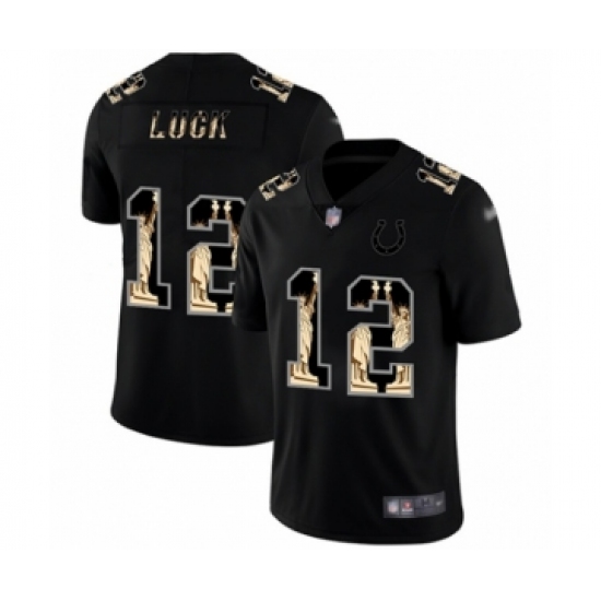 >Men's Indianapolis Colts #12 Andrew Luck Limited Black Statue of Liberty Football Jersey