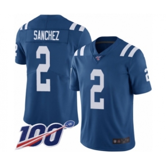 Men's Indianapolis Colts #2 Rigoberto Sanchez Royal Blue Team Color Vapor Untouchable Limited Player 100th Season Football Jersey