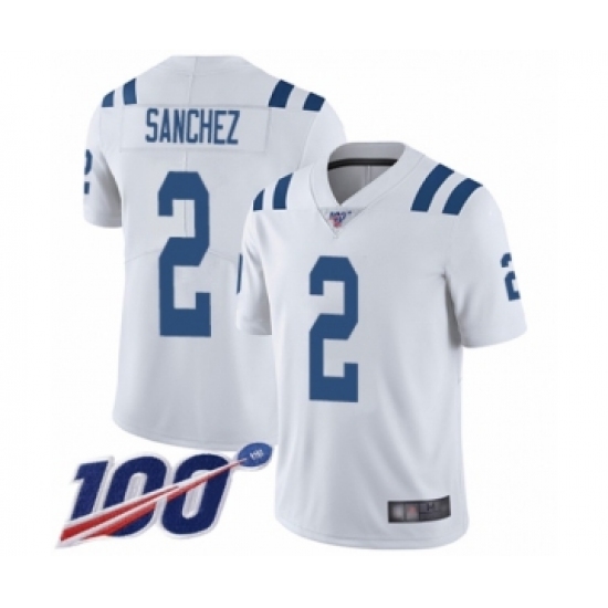 >Men's Indianapolis Colts #2 Rigoberto Sanchez White Vapor Untouchable Limited Player 100th Season Football Jersey