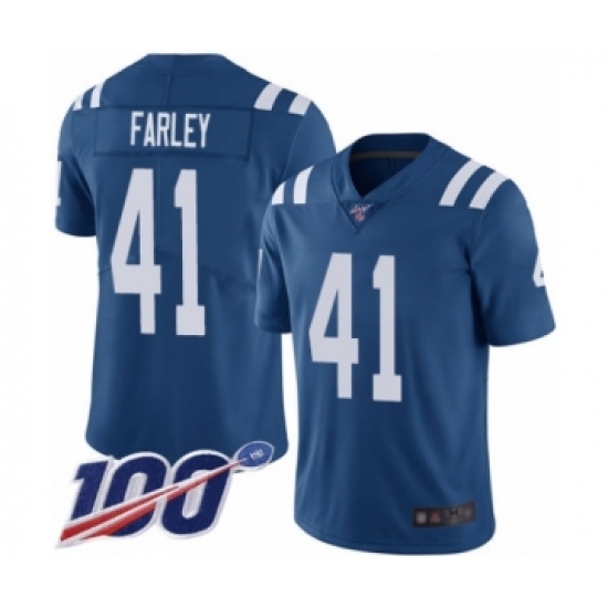 Men's Indianapolis Colts #41 Matthias Farley Royal Blue Team Color Vapor Untouchable Limited Player 100th Season Football Jersey