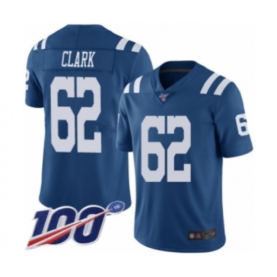 Men's Indianapolis Colts #62 Le'Raven Clark Limited Royal Blue Rush Vapor Untouchable 100th Season Football Jersey