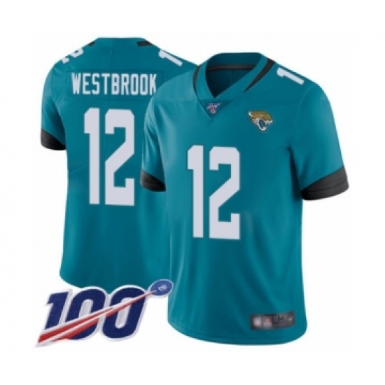 >Men's Jacksonville Jaguars #12 Dede Westbrook Teal Green Alternate Vapor Untouchable Limited Player 100th Season Football Jersey