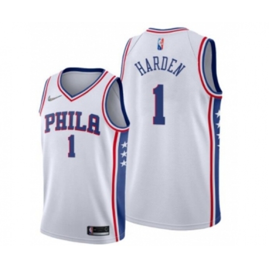 >Men's James Harden #1 Philadelphia 76ers Association Edition White Jersey