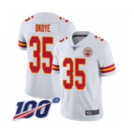 >Men's Kansas City Chiefs #35 Christian Okoye White Vapor Untouchable Limited Player 100th Season Football Jersey