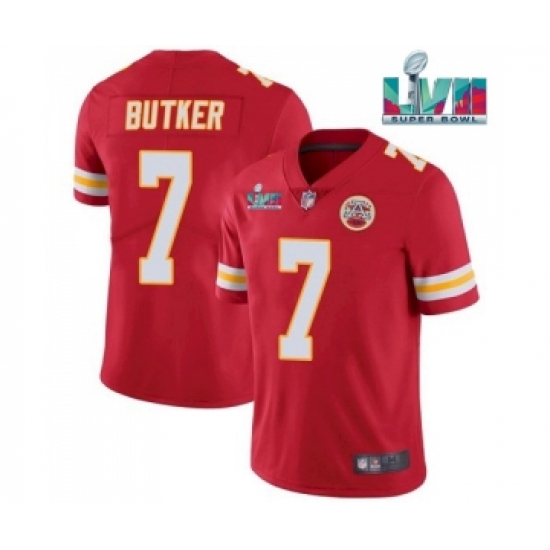 >Men’s Kansas City Chiefs #7 Harrison Butker Red Super Bowl LVII Patch Vapor Untouchable Limited Stitched Jersey