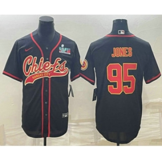 Men's Kansas City Chiefs #95 Chris Jones Black With Super Bowl LVII Patch Cool Base Stitched Baseball Jersey