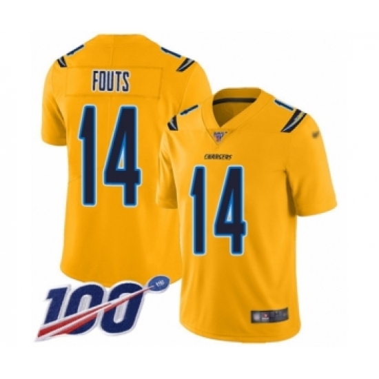 Men's Los Angeles Chargers #14 Dan Fouts Limited Gold Inverted Legend 100th Season Football Jersey