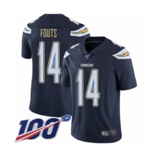 >Men's Los Angeles Chargers #14 Dan Fouts Navy Blue Team Color Vapor Untouchable Limited Player 100th Season Football Jersey