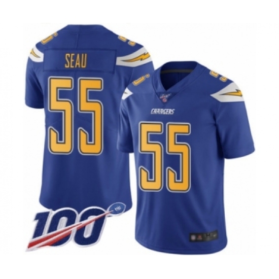 Men's Los Angeles Chargers #55 Junior Seau Limited Electric Blue Rush Vapor Untouchable 100th Season Football Jersey