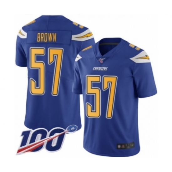 >Men's Los Angeles Chargers #57 Jatavis Brown Limited Electric Blue Rush Vapor Untouchable 100th Season Football Jersey