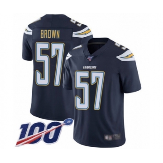 >Men's Los Angeles Chargers #57 Jatavis Brown Navy Blue Team Color Vapor Untouchable Limited Player 100th Season Football Jersey