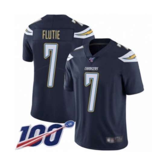 >Men's Los Angeles Chargers #7 Doug Flutie Navy Blue Team Color Vapor Untouchable Limited Player 100th Season Football Jersey