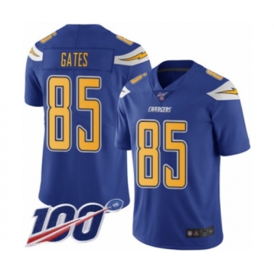 >Men's Los Angeles Chargers #85 Antonio Gates Limited Electric Blue Rush Vapor Untouchable 100th Season Football Jersey