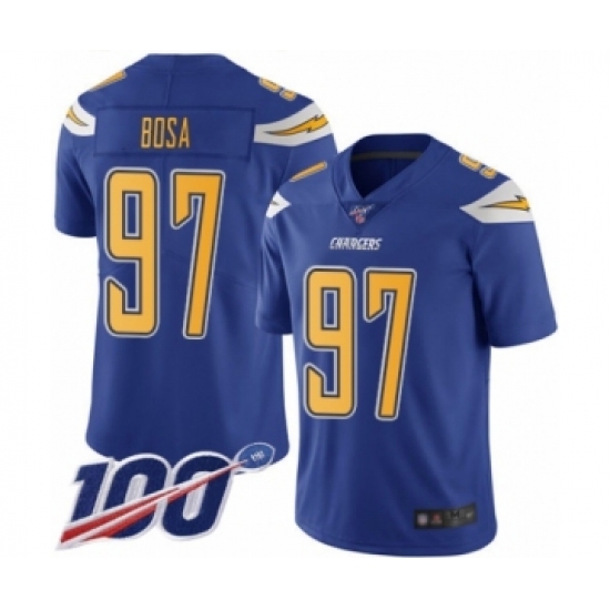 Men's Los Angeles Chargers #97 Joey Bosa Limited Electric Blue Rush Vapor Untouchable 100th Season Football Jersey