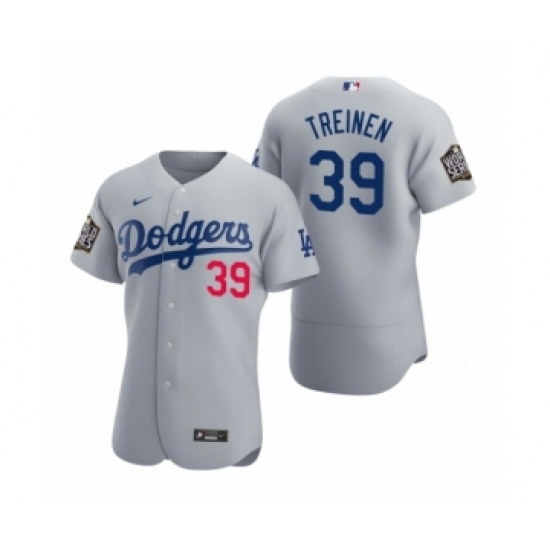 >Men's Los Angeles Dodgers #39 Blake Treinen Nike Gray 2020 World Series Authentic Jersey