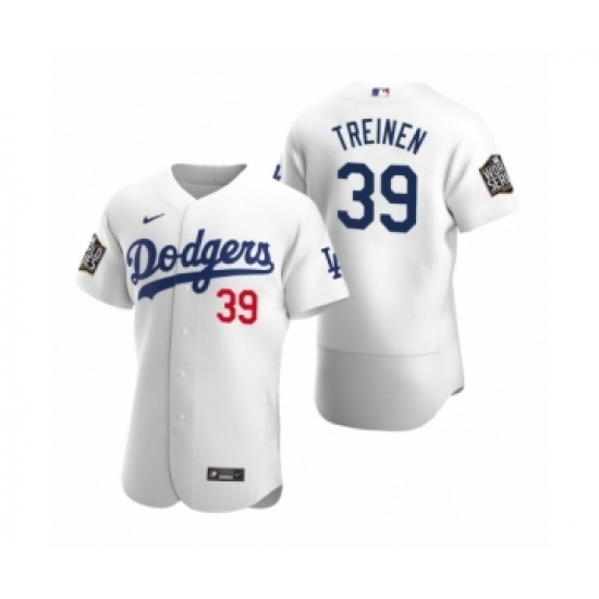 >Men's Los Angeles Dodgers #39 Blake Treinen Nike White 2020 World Series Authentic Jersey
