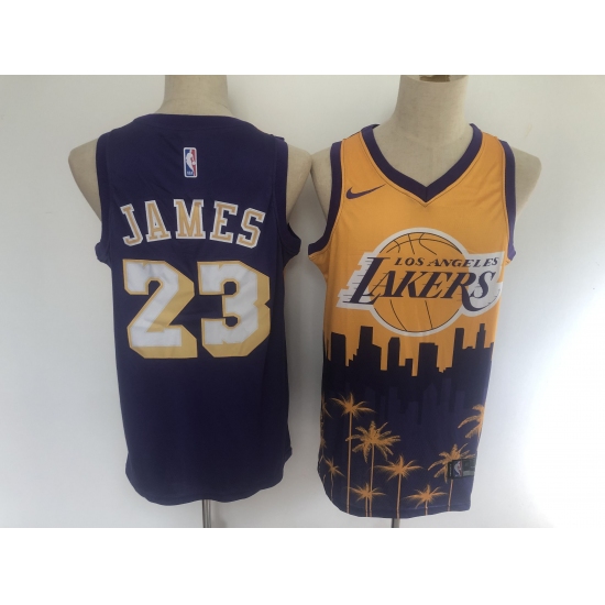 Men's Los Angeles Lakers #23 LeBron James Yellow Nike Swingman Jersey