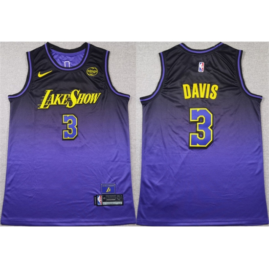 Men's Los Angeles Lakers #3 Anthony Davis Purple 2024 Stitched Basketball Jersey