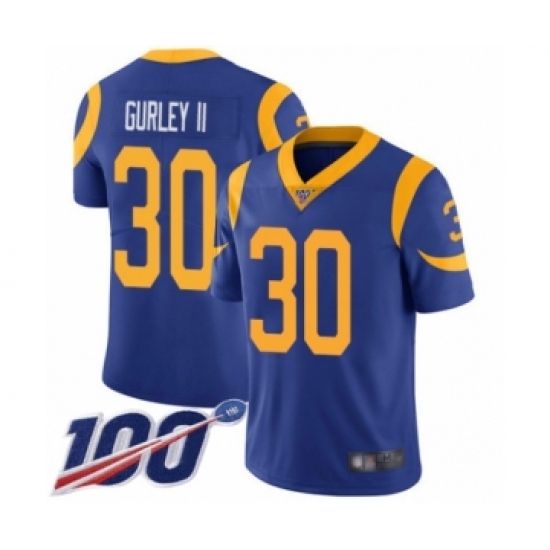 Men's Los Angeles Rams #30 Todd Gurley Royal Blue Alternate Vapor Untouchable Limited Player 100th Season Football Jersey