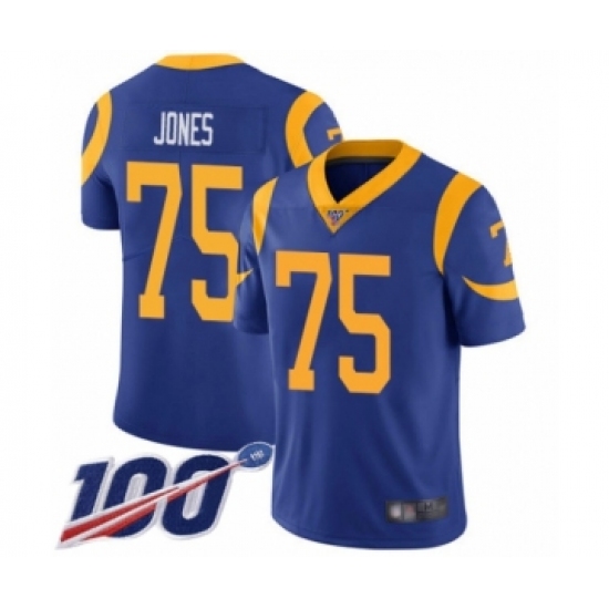 Men's Los Angeles Rams #75 Deacon Jones Royal Blue Alternate Vapor Untouchable Limited Player 100th Season Football Jersey