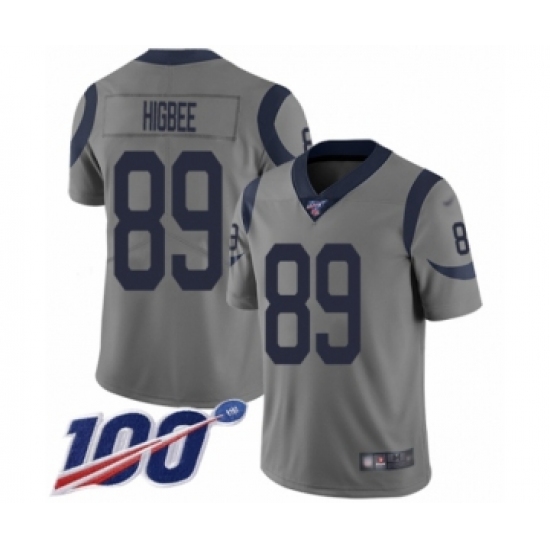 Men's Los Angeles Rams #89 Tyler Higbee Limited Gray Inverted Legend 100th Season Football Jersey