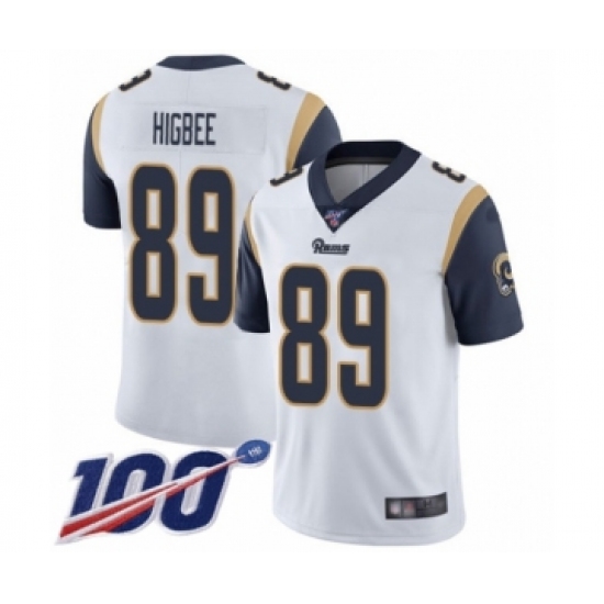 Men's Los Angeles Rams #89 Tyler Higbee White Vapor Untouchable Limited Player 100th Season Football Jersey