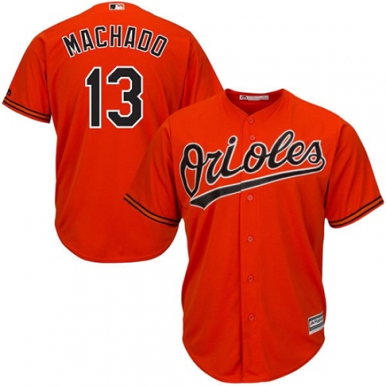 Home>MLB>Baltimore Orioles>Manny Machado>Men's Majestic Baltimore Orioles #13 Manny Machado Replica Orange Alternate Cool Base MLB Jersey