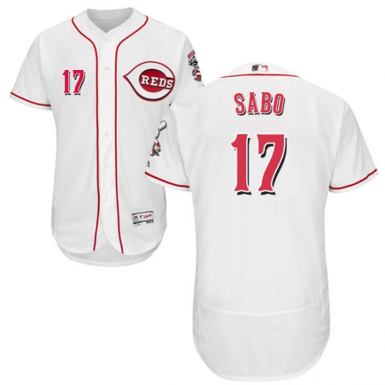 Men's Majestic Cincinnati Reds #17 Chris Sabo White Home Flex Base Authentic Collection MLB Jersey