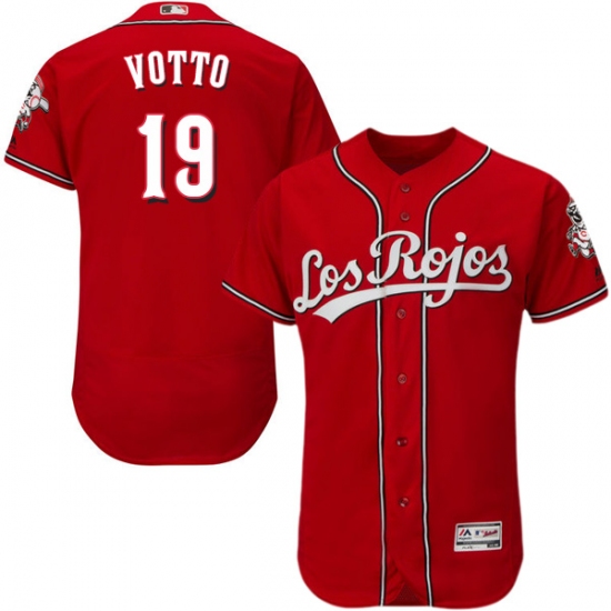 Men's Majestic Cincinnati Reds #19 Joey Votto Red Los Rojos Flexbase Authentic Collection MLB Jersey